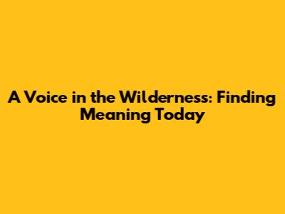 A Voice In The Wilderness: Finding Meaning Today