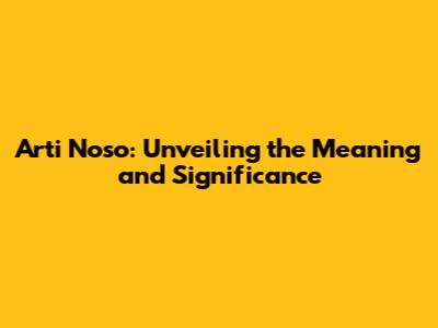 Arti Noso: Unveiling The Meaning And Significance