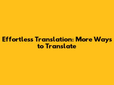 Effortless Translation: More Ways To Translate