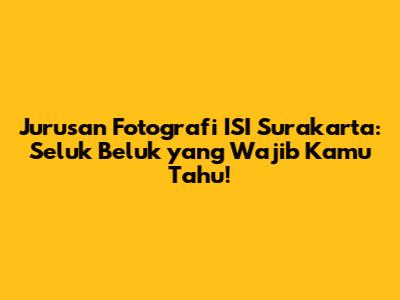 Pengen jadi fotografer handal? Atau mungkin kamu punya passion mendalam di dunia visual dan ingin mengasah kemampuanmu lebih jauh? Jurusan Fotografi ISI Surakarta bisa jadi pilihan yang tepat, guys! Institut Seni Indonesia (ISI) Surakarta memang terkenal dengan kualitas pendidikannya di bidang seni, dan jurusan fotografinya nggak kalah keren. Yuk, kita kupas tuntas semua yang perlu kamu tahu tentang jurusan ini!