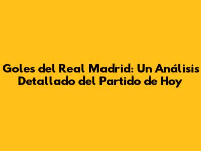 Goles Del Real Madrid: Análisis Del Partido De Hoy