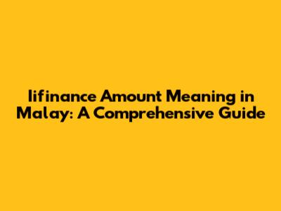 Iifinance Amount Meaning In Malay: A Comprehensive Guide