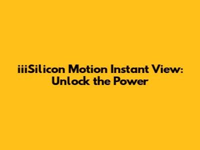 IiiSilicon Motion Instant View: All You Need To Know