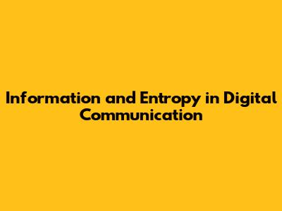 Information And Entropy: A Digital Communication Guide