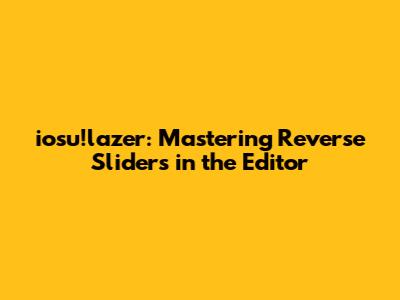 Hey guys! Let's dive deep into the world of iosu!lazer, specifically focusing on mastering reverse sliders in the editor. If you're an aspiring beatmap creator or just someone looking to up their iosu! game, understanding how to effectively use reverse sliders is crucial. Reverse sliders can add complexity, rhythm, and overall finesse to your maps. So, buckle up, and let’s get started!