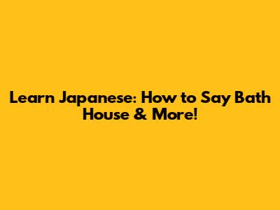 Learn Japanese: How To Say 'Bath House' & More!
