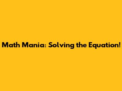 Math Mania: Solving The Equation!