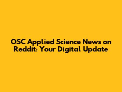 OSC Applied Science News On Reddit: Your Digital Update