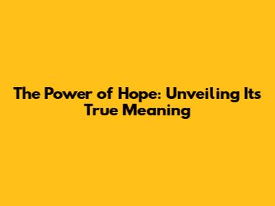 The Power Of Hope: Unveiling Its True Meaning