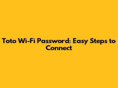 Toto Wi-Fi Password: Easy Steps To Connect