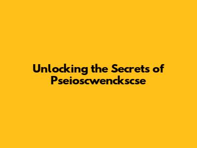 Unlocking The Secrets Of Pseioscwenckscse