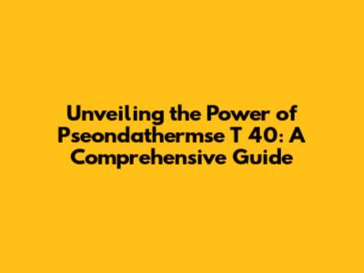 Unveiling The Power Of Pseondathermse T 40: A Comprehensive Guide